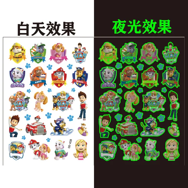 Cartoon Paw Patrol Luminous Tattoo Stickers Cute Animation Children S Water Transfer Printing Disposable Glow Sticker Boys Gifts Aliexpress